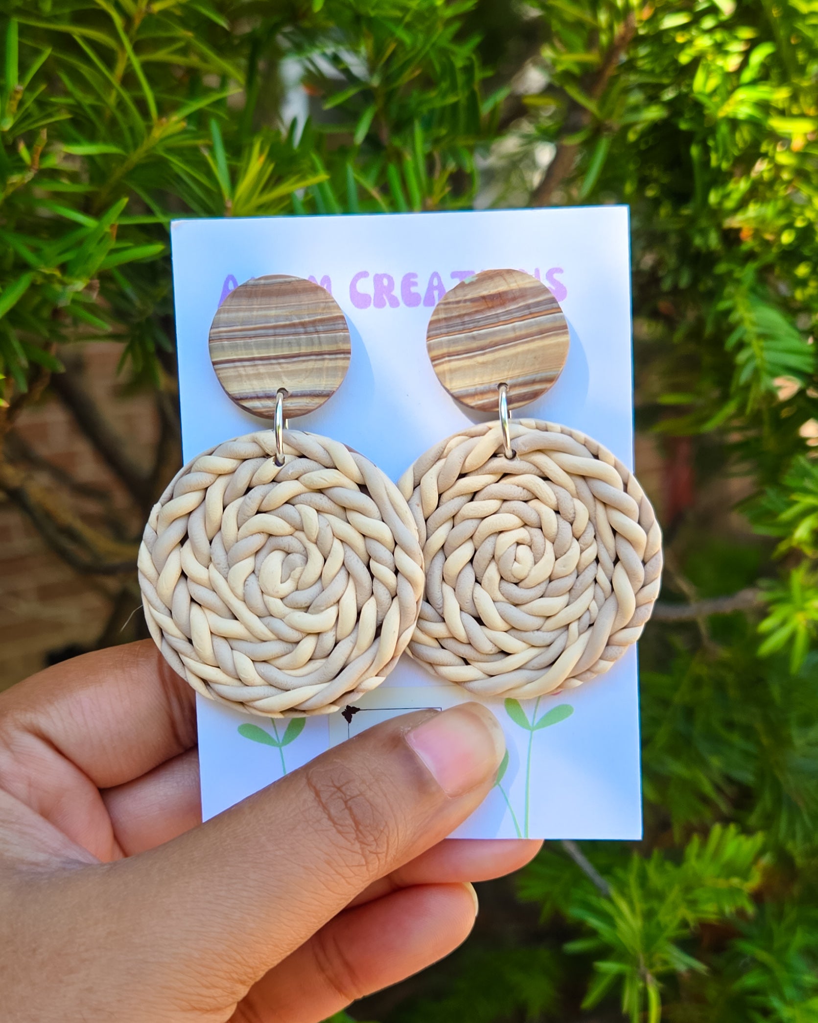 Please look at all pictures and pick your preferred basket weave inspired earrings. There are 5 options available.