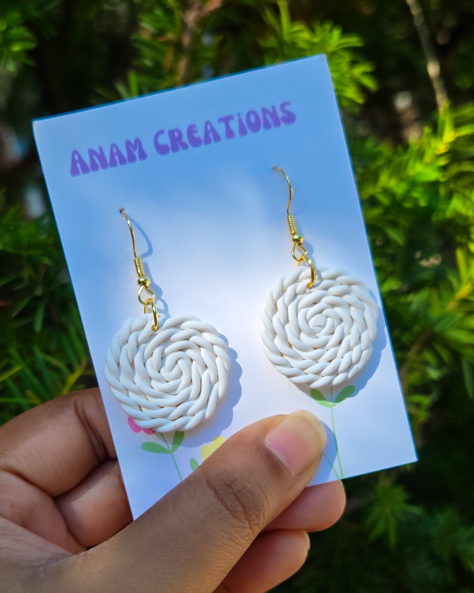 Handrolled and twisted earrings inspired by woven basket coils.